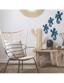 GECKO SALAMANDRE SET De 2 En Métal Et Verre BLEU Pétrole 30cm Porte Bonheur