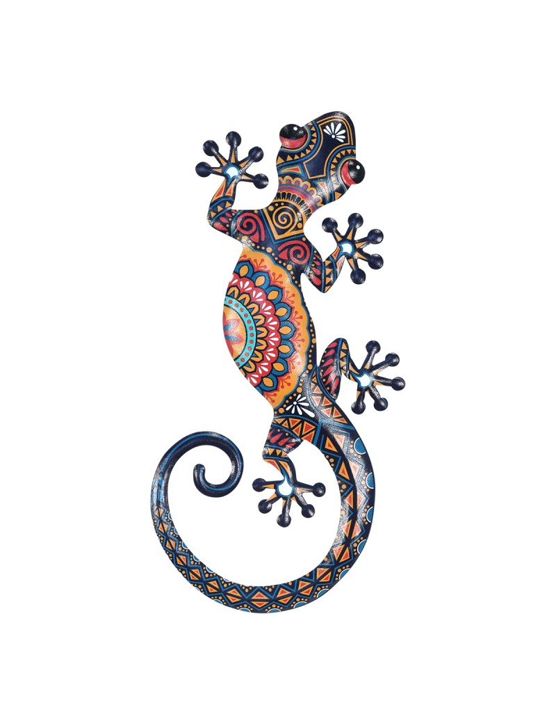 Gecko Lézard Décoration murale de 30cm en métal motifs ethniques