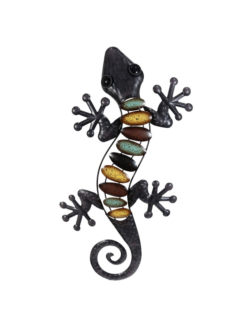 Décoration murale Voyage évasion, un Gecko Lézard en métal de 61cm de long, couleur Brun Noir.