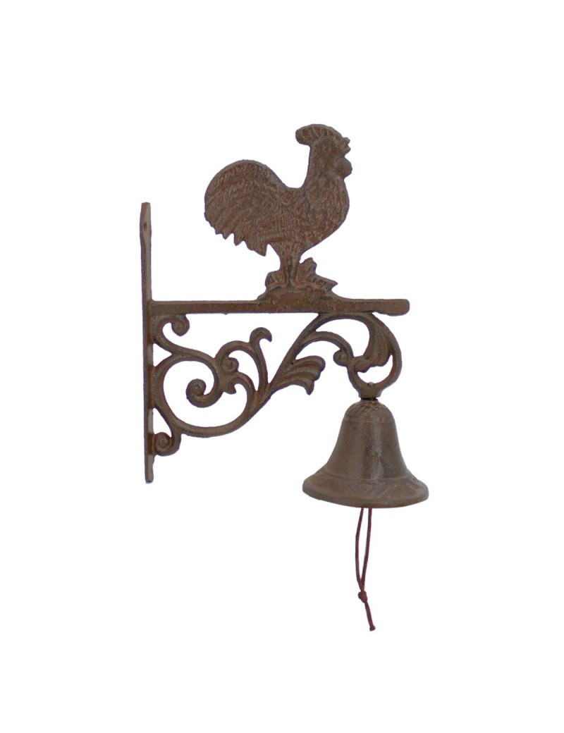 Décoration Maison de Campagne, une Cloche manuelle Carillon en Fonte Fer forgé ornement Coq 29cm.