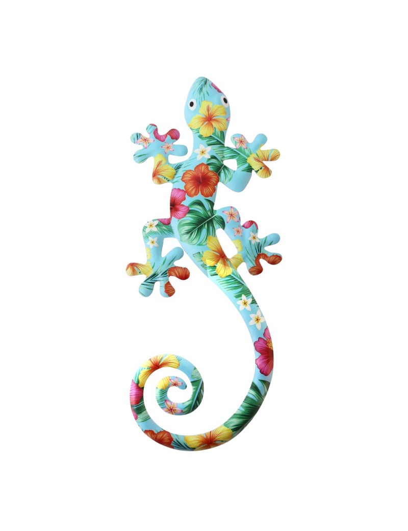 GECKO Lézard Décoration murale en métal Design Fleurs tropicale 30cm