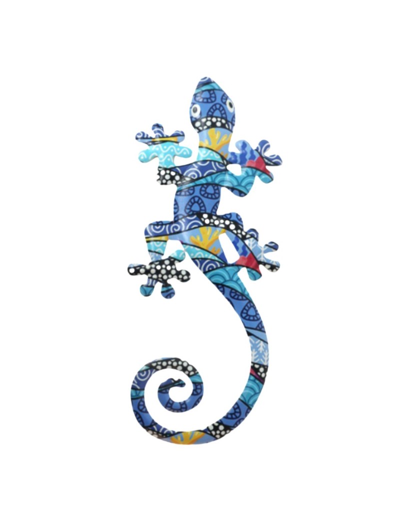 Gecko Lézard Décoration murale en métal de 30cm Design Ethnique Bleu