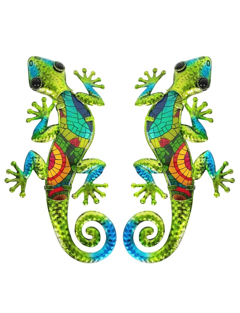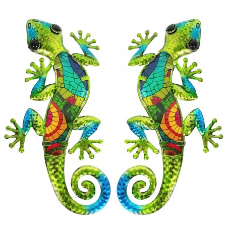 Lézard Gecko Décoration murale de 30cm en métal et Verre couleur Vert Bleu