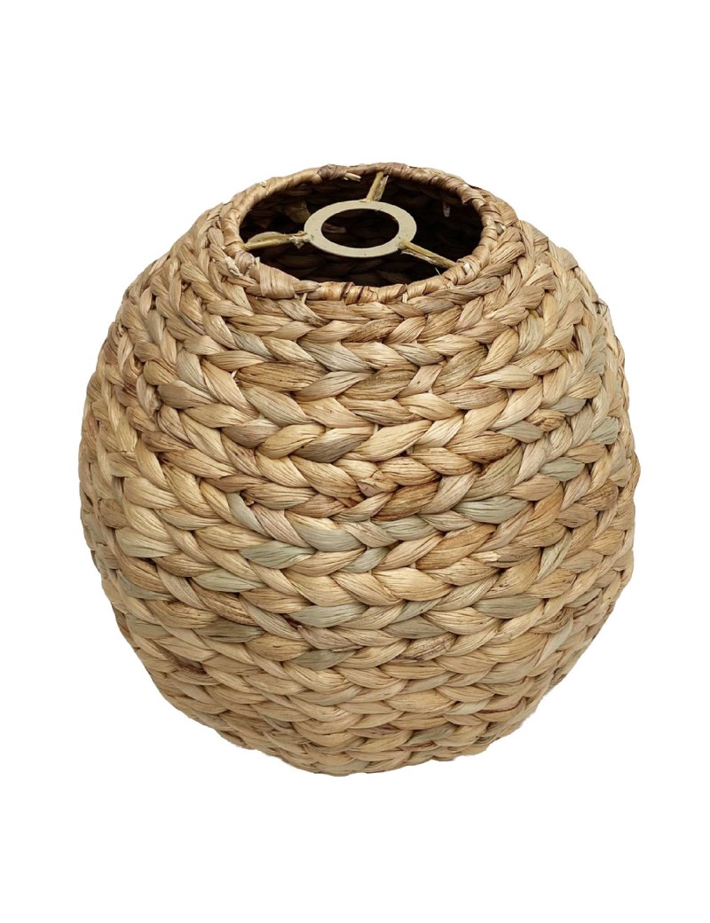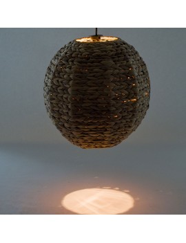 Décoration Ambiance couleur Naturelle, un Lustre Plafonnier rond forme de Boule en Jonc de Mer de 35cm de diamètre.