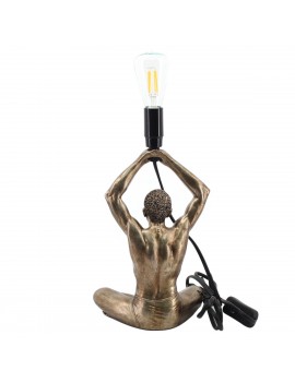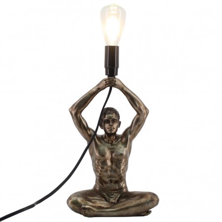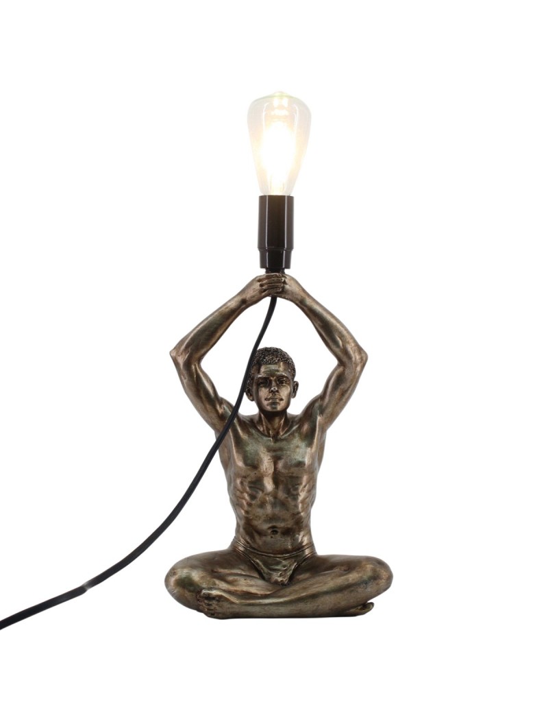 Décoration Originale une Lampe Statue d'un Homme assis en Yoga tenant l'ampoule au dessus de sa tête, ensemble d'une hauteur de 30cm.