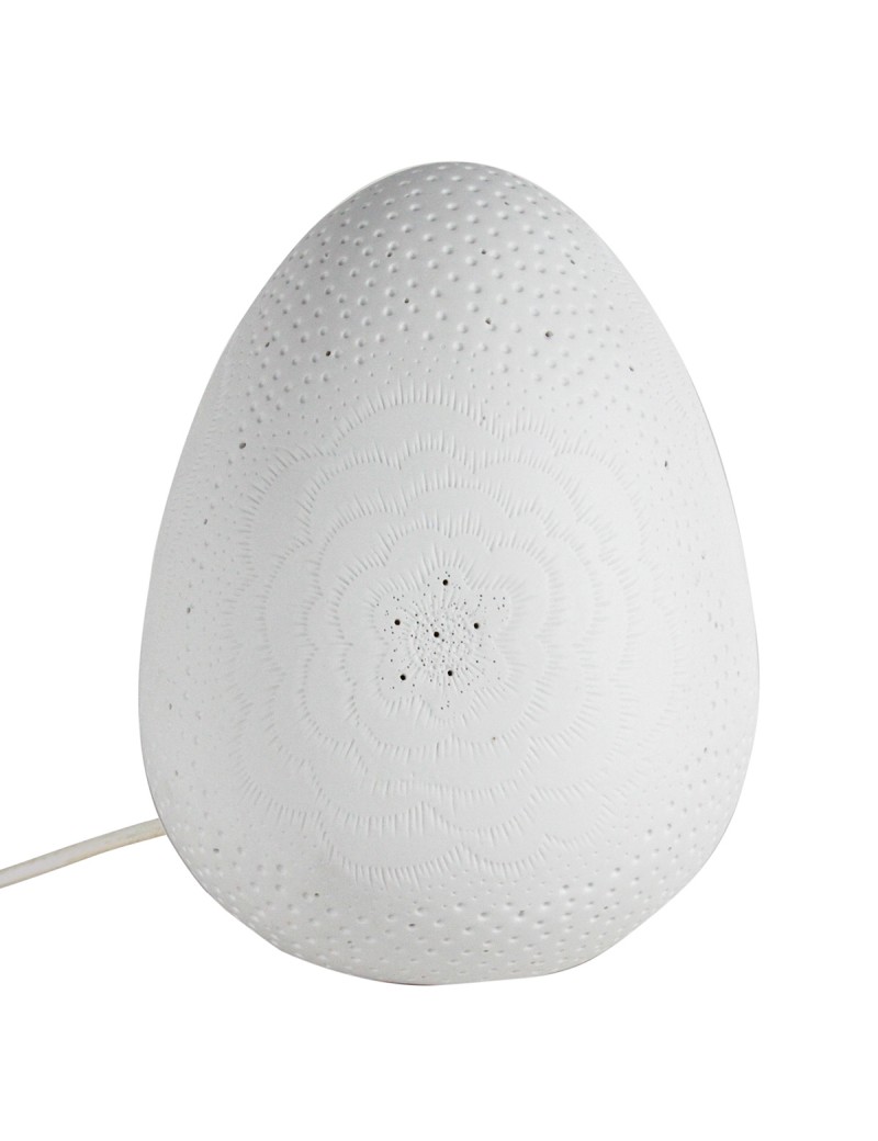 LAMPE en Porcelaine Blanche en forme d'Oeuf Lumière douce 26cm