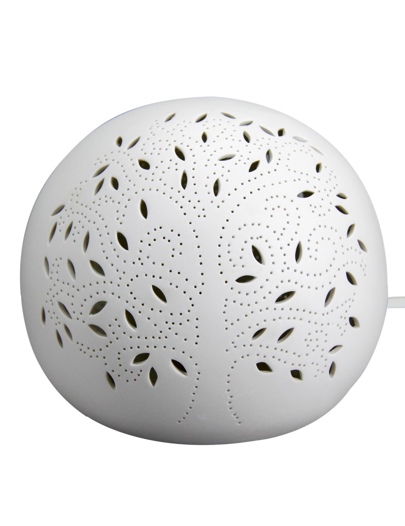 LAMPE Boule Blanche en porcelaine lumière douce Décoration Arbre de vie découpe