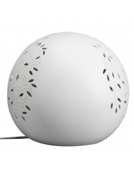 Décoration Lumière d'Intérieur, une Lampe boule à poser en porcelaine Blanche avec Arbre de vie en découpe pour une luminosité ambiance douce.