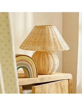 Lampe à poser 31cm en fibre naturelle Jonc socle rond boule