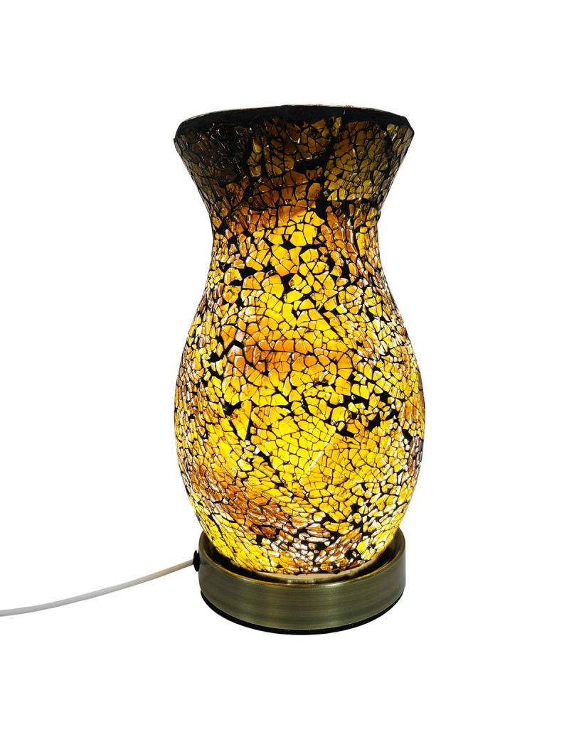 LAMPE Mosaïque en métal et Verre forme originale Tulipe couleur ambrée jaune