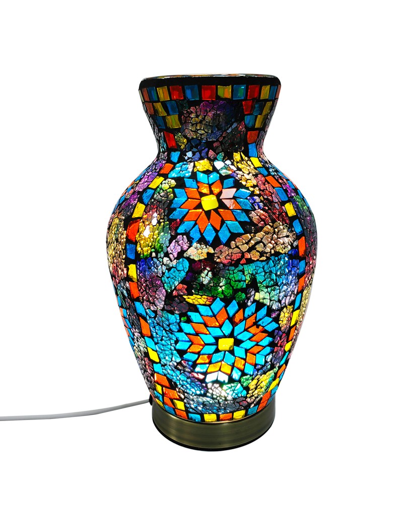 LAMPE en Verre Mosaïque en forme de Vase Ovale de 25cm socle en métal