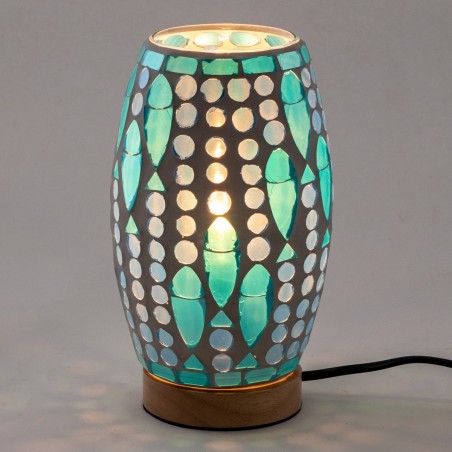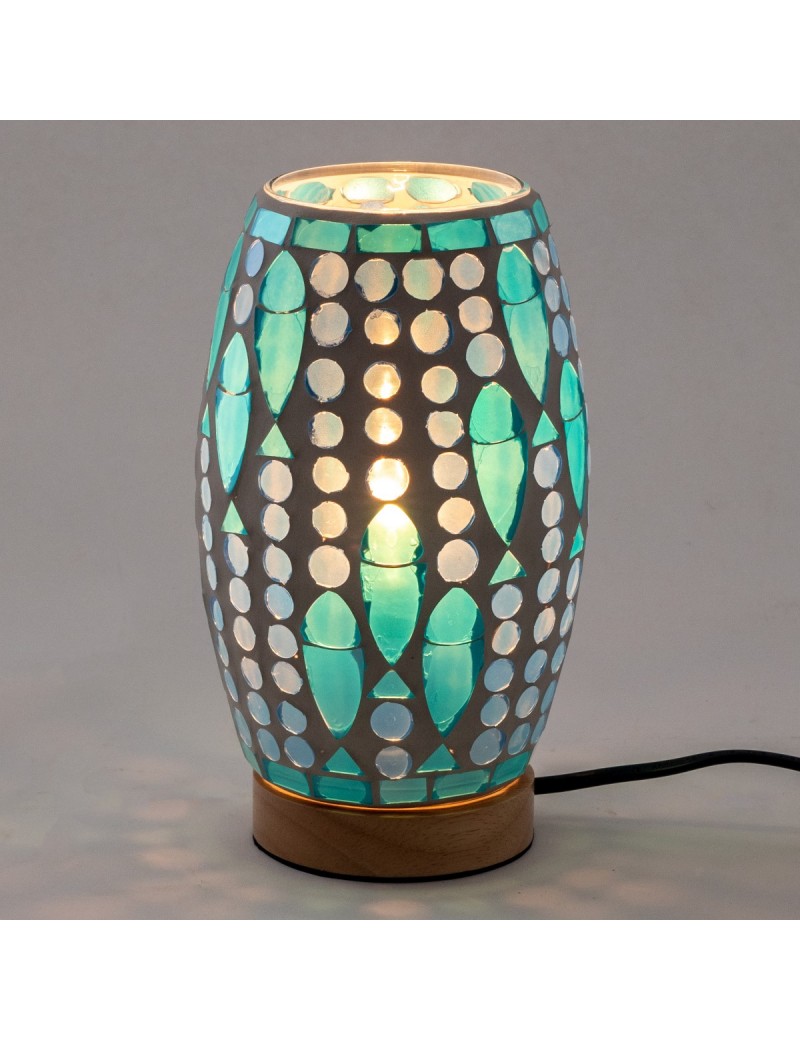 LAMPE de forme Ovale en Verre Mosaïque couleur Bleu socle en Bois