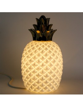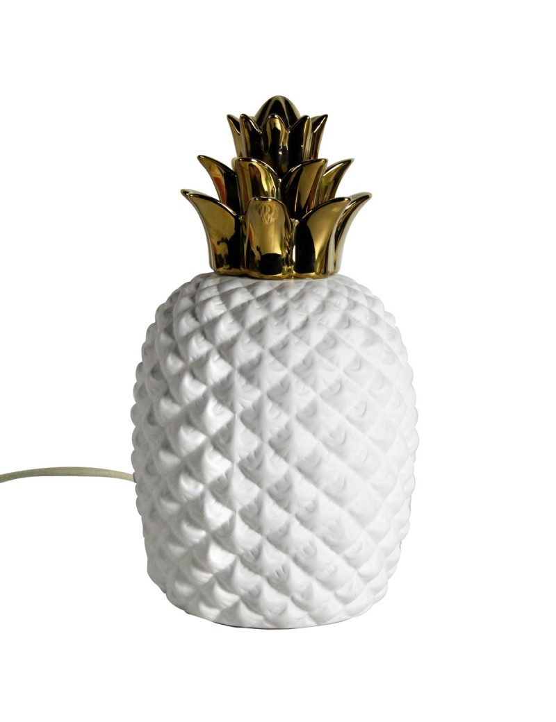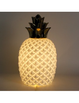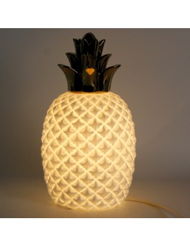 Décoration d'Intérieur originale, Lampe de table en forme d'Ananas en céramique Blanc et Doré d'une hauteur de 30cm.