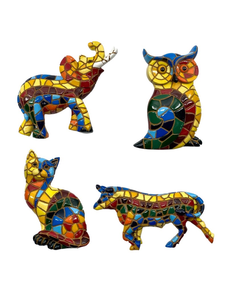 Magnet de 9cm au Design Mosaïque en couleur Chat Chouette éléphant Toro