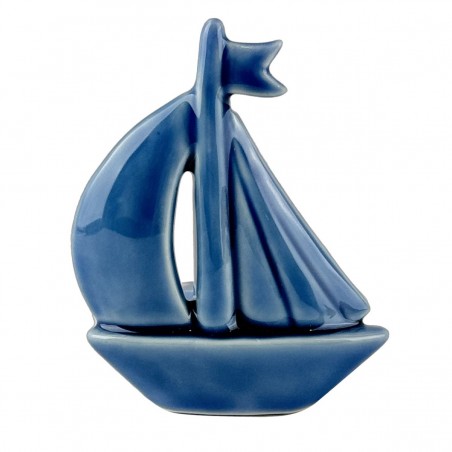 Bougeoir VOILIER en céramique 8x9cm couleur Bleu Marine