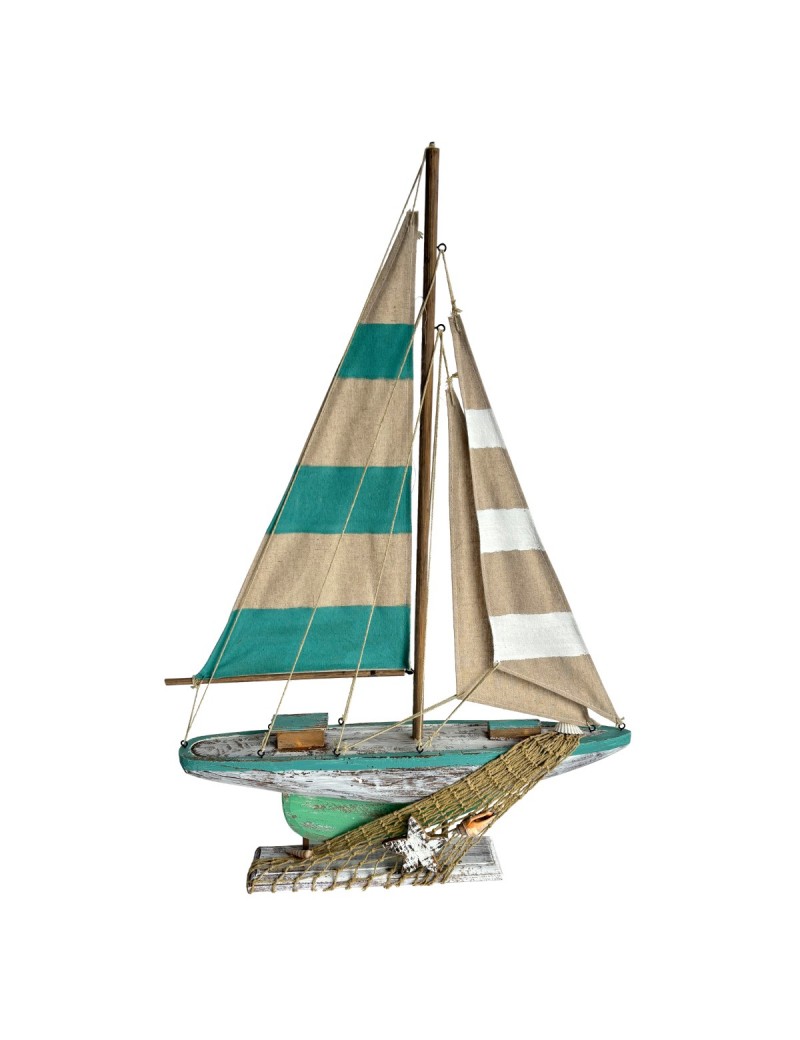 Bateau Voilier Décoration miniature en Bois et tissus effet vieilli