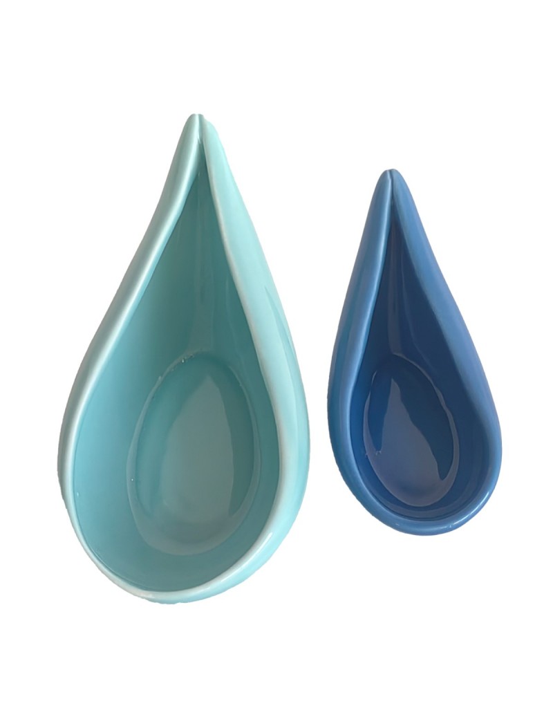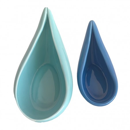 Décoration Bord de Mer Océan, Set de 2 coupes en forme de Goutte d'eau en céramique bleu ciel et Marine.