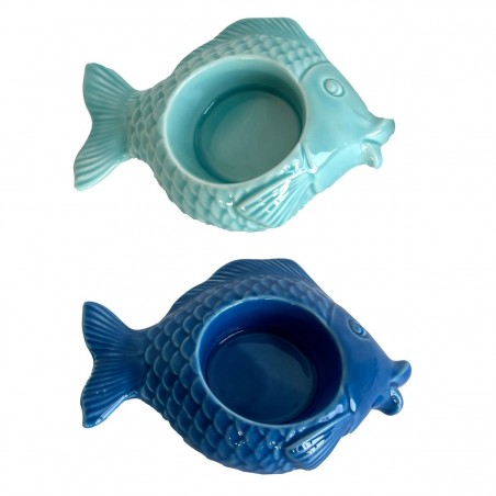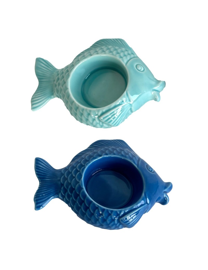 Décoration d'Intérieur Maison Bord de Mer Océan, Bougeoir en forme de Poisson de couleur Bleu Ciel et Marine.