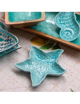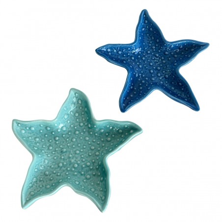 Plateaux Vide Poche étoile de Mer Set de 2 en céramique Bleu Ciel et Marine