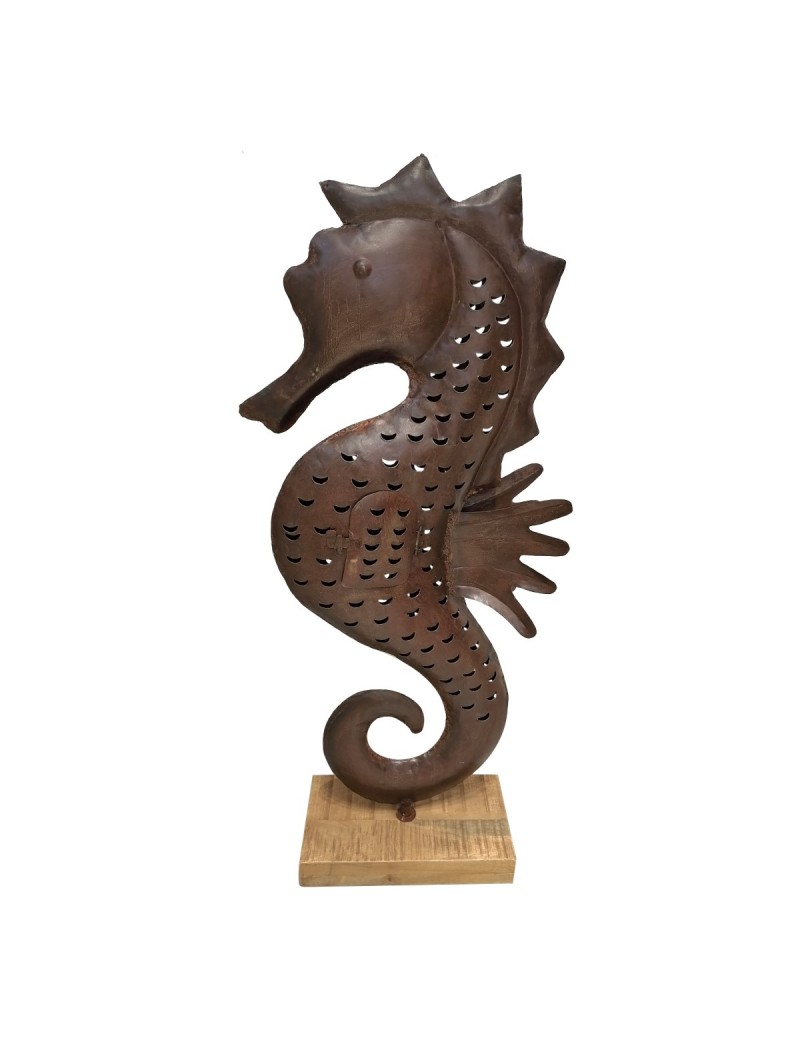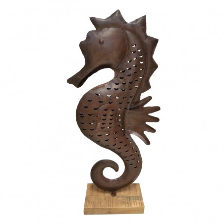 HIPPOCAMPE Statue en Métal couleur Brun de 67cm sur socle Bois