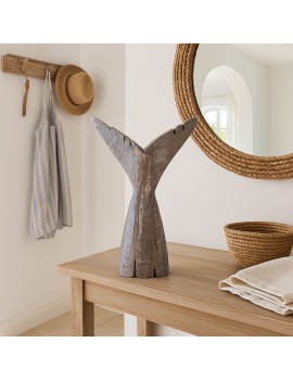 Décoration maison du bord de Mer Océan, Statue Nageoire de Baleine en bois effet vieilli de hauteur 39cm.