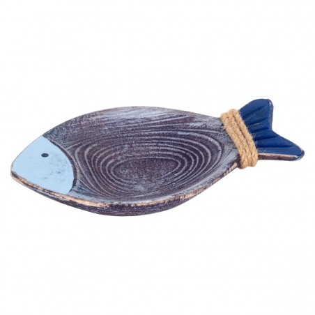 Plateau Vide poche en Bois et corde en forme de Poisson de 20cm