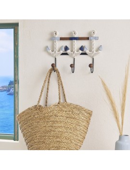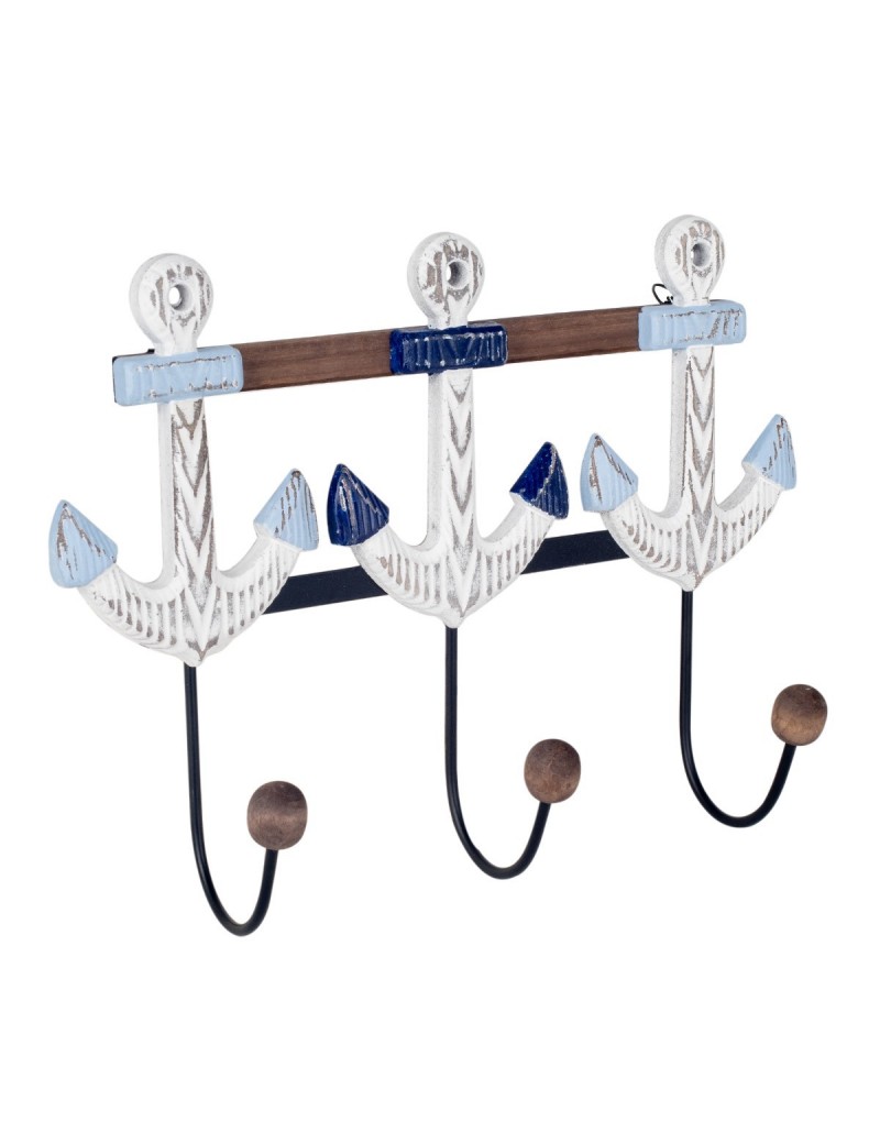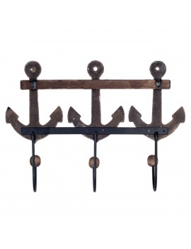 Patère 39cm en Bois et métal Décoration Ancre avec 3 Crochets