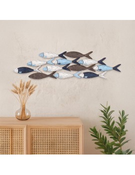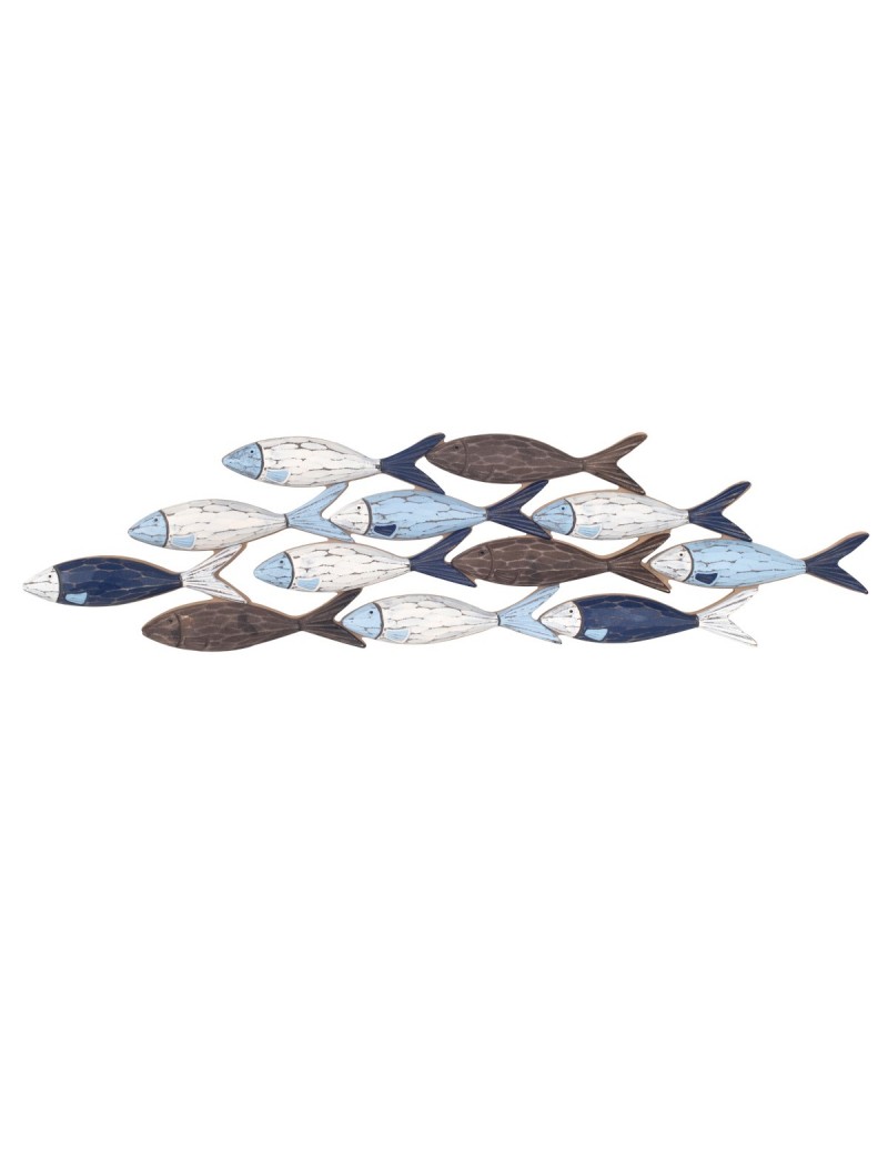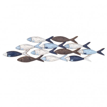 Décoration murale Banc de POISSONS en Bois couleur Océan de 82cm
