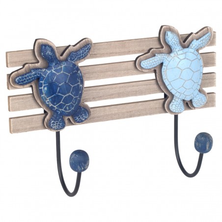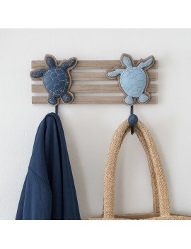 Patère en Bois de 30cm avec 2 crochets en métal Décoration Tortue de Mer
