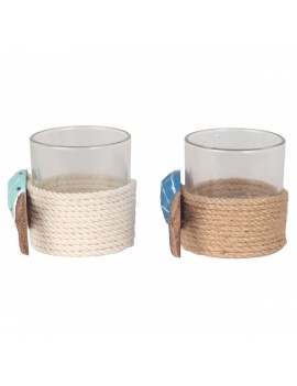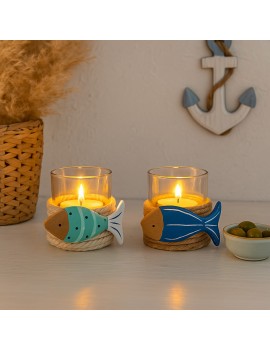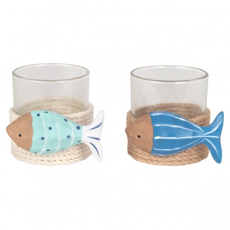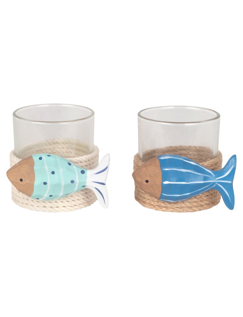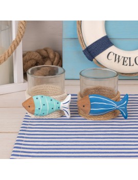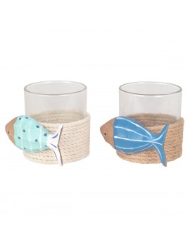 Photophore rond en verre Décoration Poisson en Bois et corde