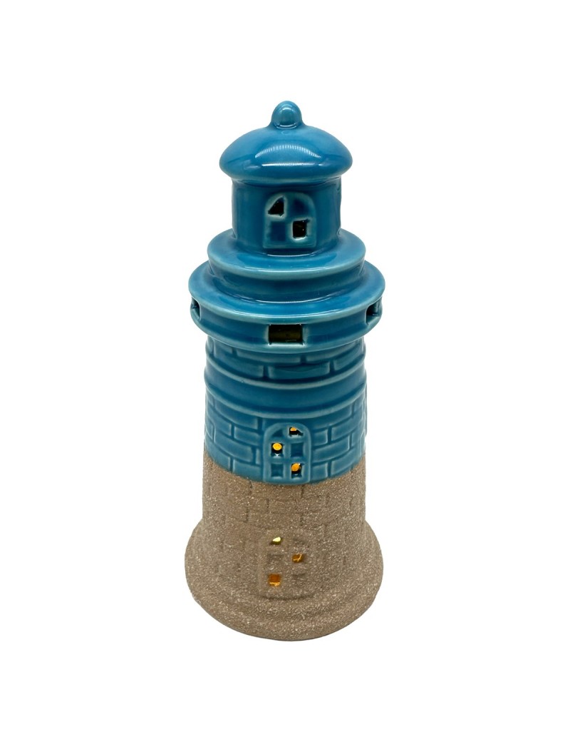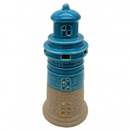 Bougeoir en forme de PHARE 18cm Décoration couleur sable et Bleu