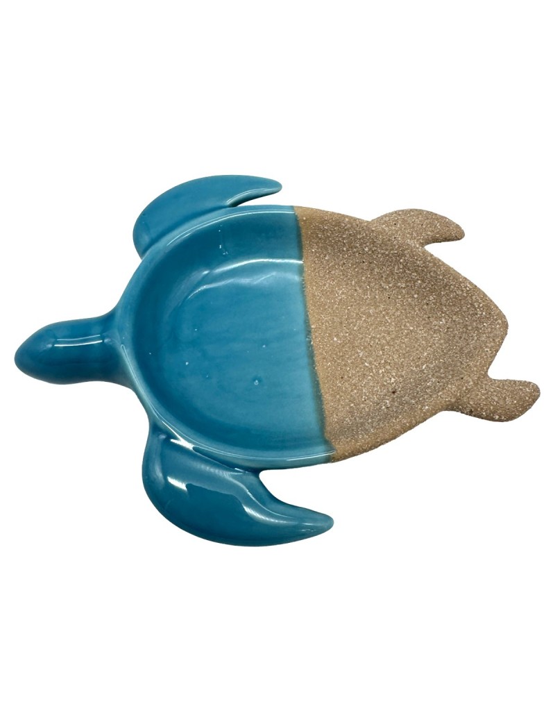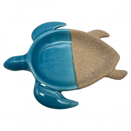Vide poche coupe en forme de Tortue de Mer couleur Bleu et Sable 13cm