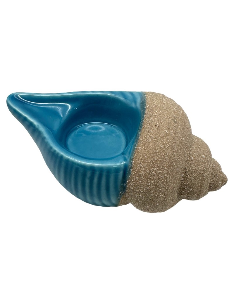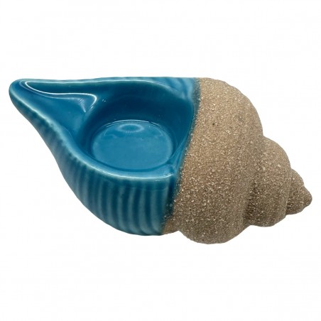 Bougeoir en forme de coquillage couleur Bleu et Sable de 13cm
