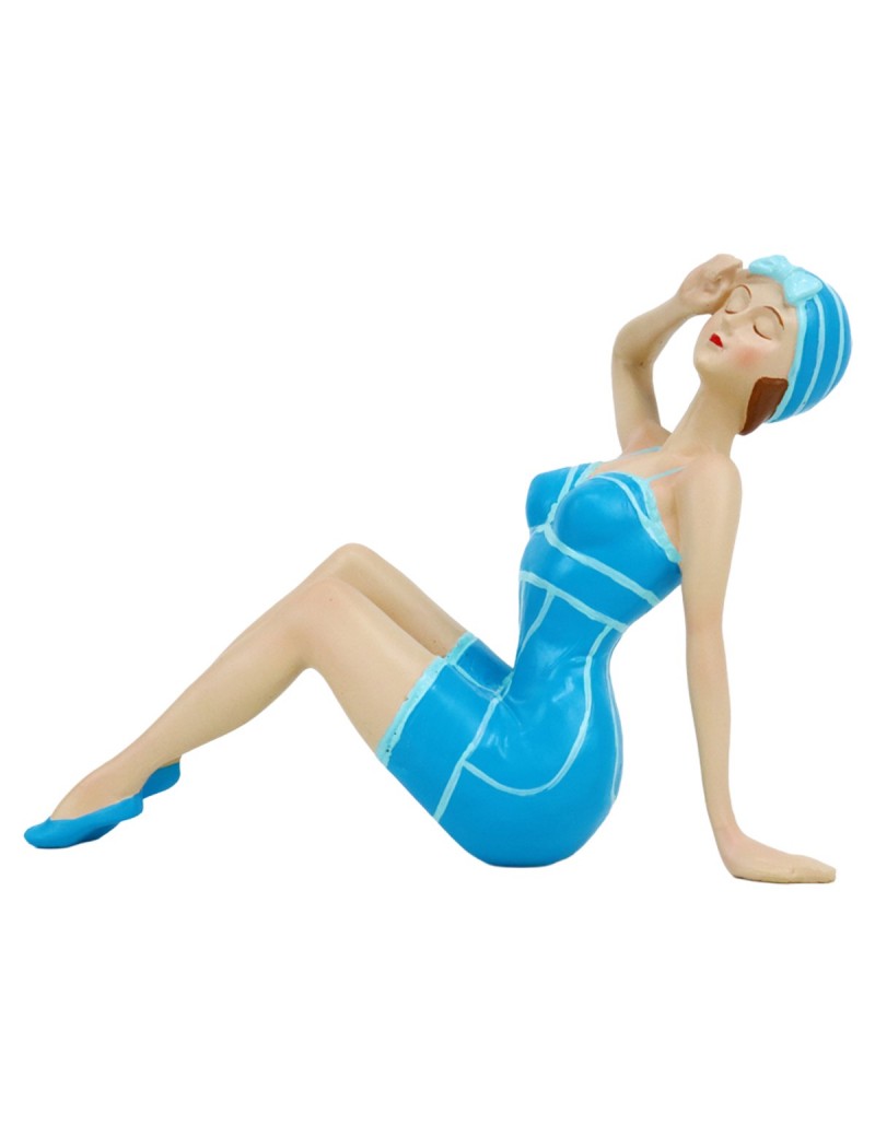 Décoration Maison Bord de Mer Océan, Baigneuse assise en maillot rétro Bleu, Déco salle de Bain.