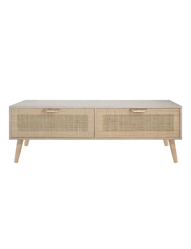 Meuble TV avec 2 tiroirs Décoration inspiration Cannage de 120cm