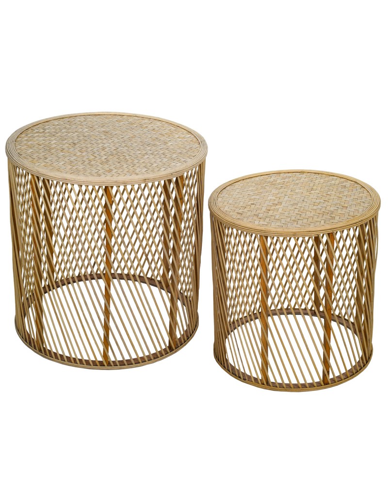TABLES Gigognes Set de 2 rondes en Bambou couleur Naturel de 50cm