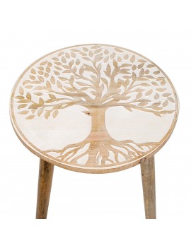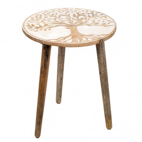 TABLE d'appoint ronde en Bois avec 3 pieds Plateau rond Décoration Arbre de Vie