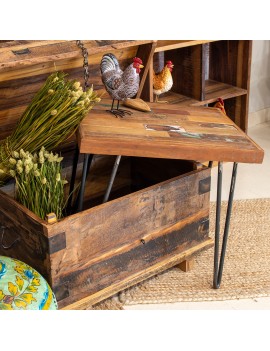 TABLE en Bois pieds en métal 50x40x45 cm Décoration collection Vintage Industriel
