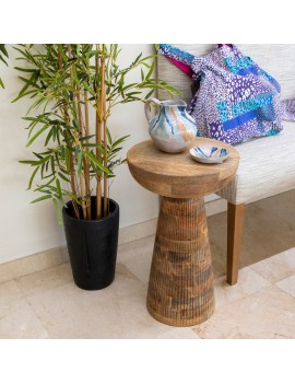 TABOURET en Bois de Manguier Design géométrique hauteur 56cm