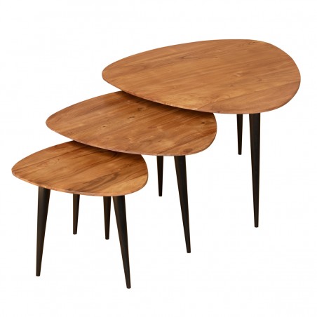 TABLE Gigogne Set de 3 en Bois plateau de forme originale Ovale