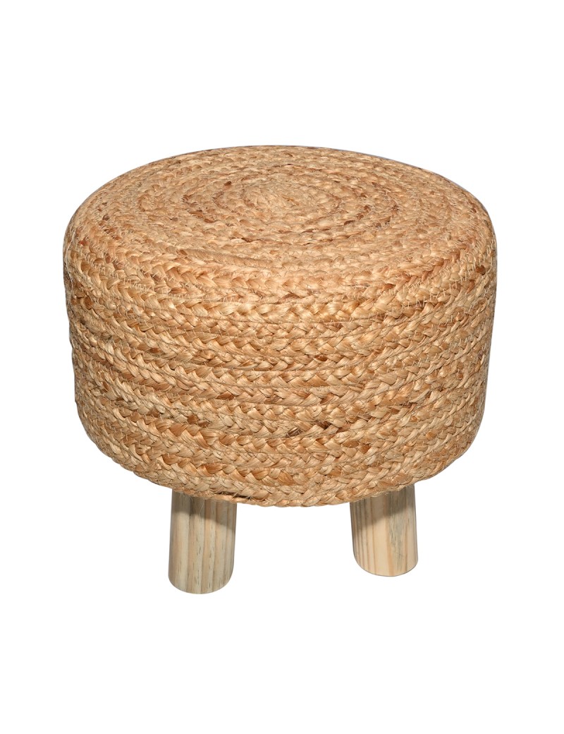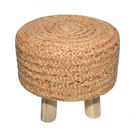 Tabouret Repose pieds rond en Jute naturel et Pieds en Bois 35x35cm