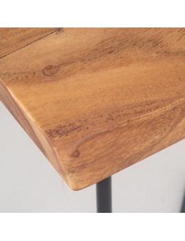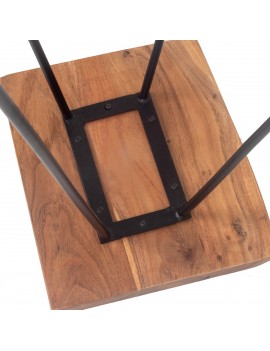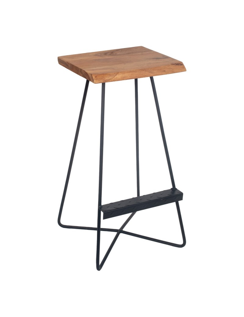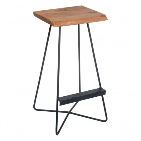 Tabouret au Design Bois et métal, assise bois de forme carré et pieds en métal de forme originale.