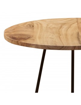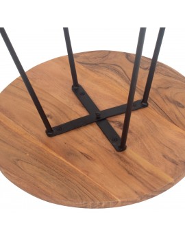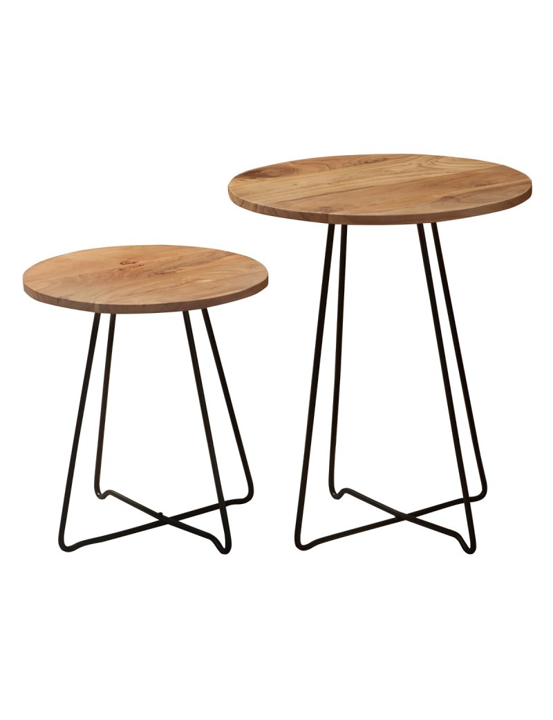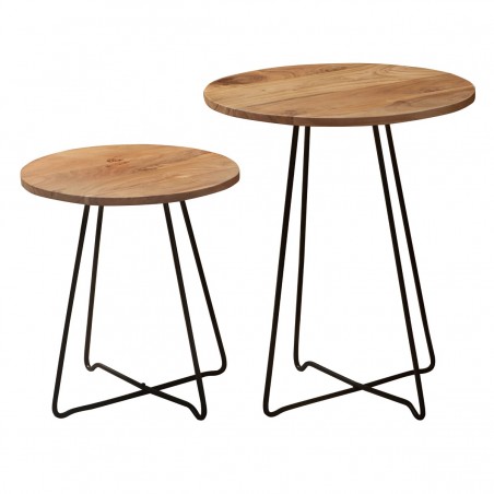 Décoration d'Intérieur un Set de 2 tables Gigognes, Plateau rond en Bois couleur Naturel et pieds en métal Noir.