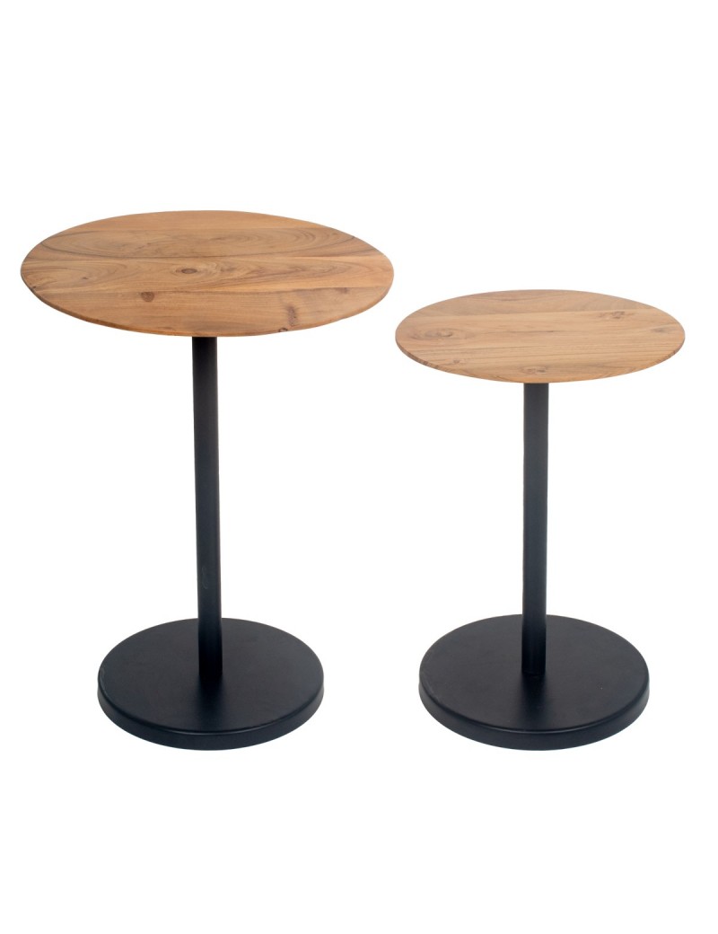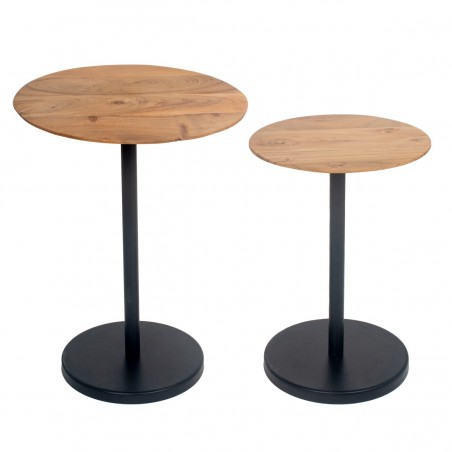 TABLES Gigognes Set de 2 rondes en Bois et Métal couleur Naturel et Noir