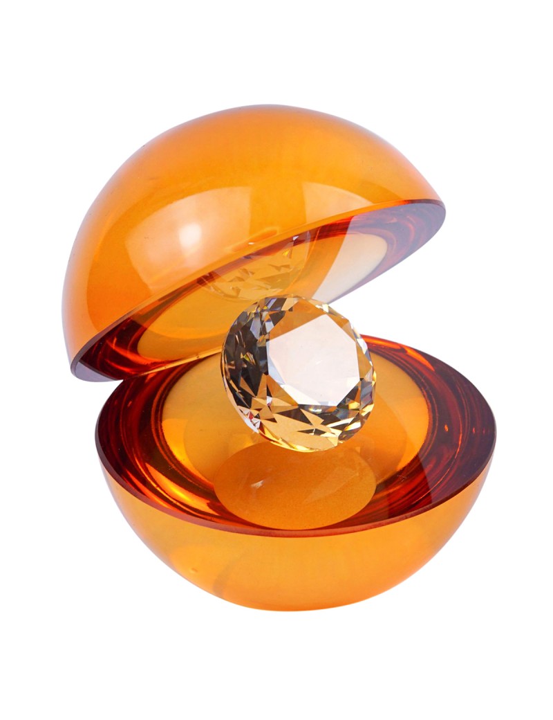Décoration en Verre rond couleur Orange Diamant dans son écrin