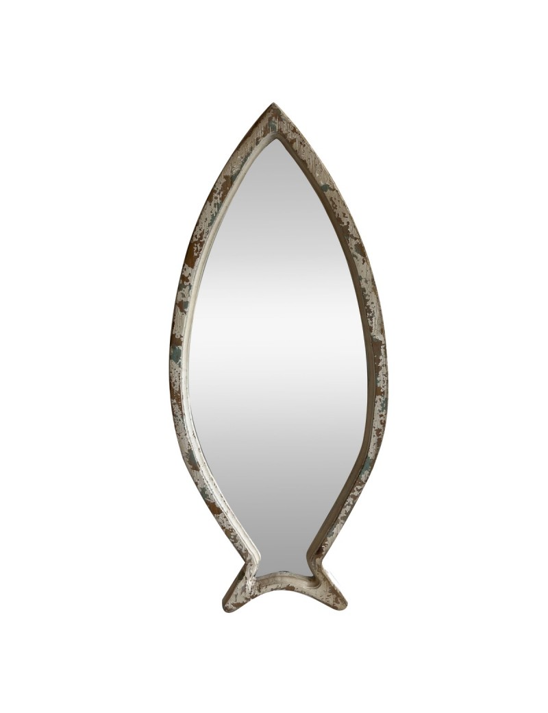 MIROIR mural en forme de Poisson à suspendre 64cm effet vieilli