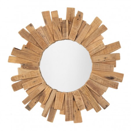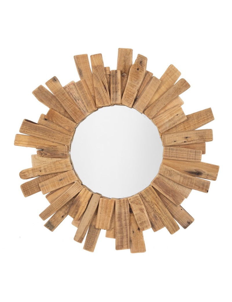 Décoration murale Inspiration nature, miroir rond au Design Soleil en Bois, diamètre 60cm.
