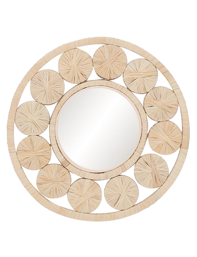 Miroir mural rond de 26cm en fibre Naturelle Palmier Jonc de Mer
