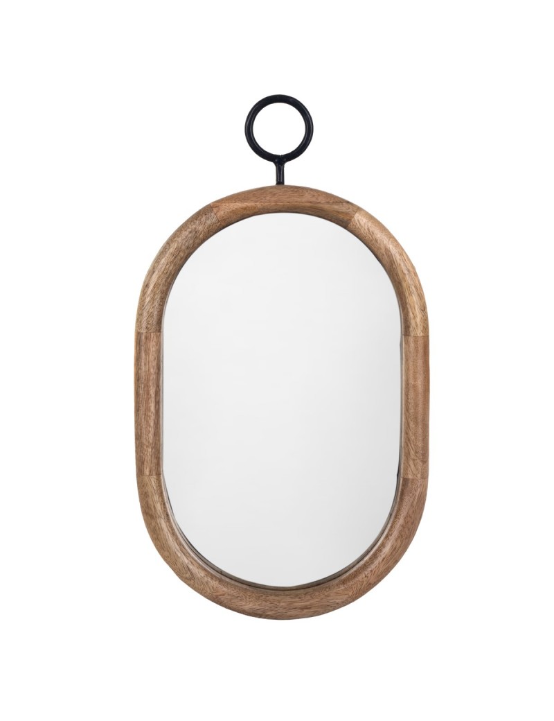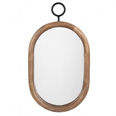 Miroir mural à suspendre de forme originale Ovale, pourtour en Bois et crochet en métal ensemble de 43cm.