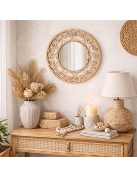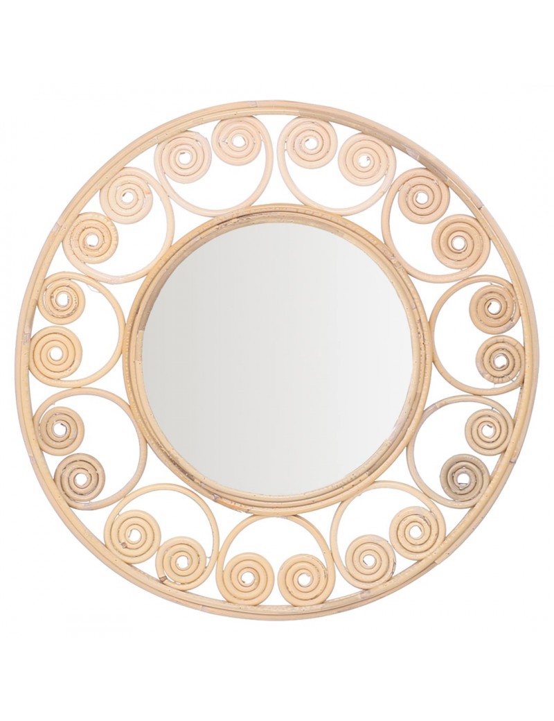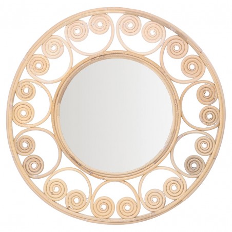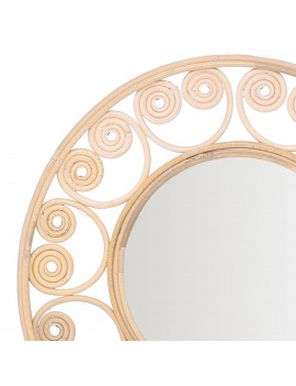 MIROIR mural rond de 40cm en Rotin avec Design Volutes couleur Naturel